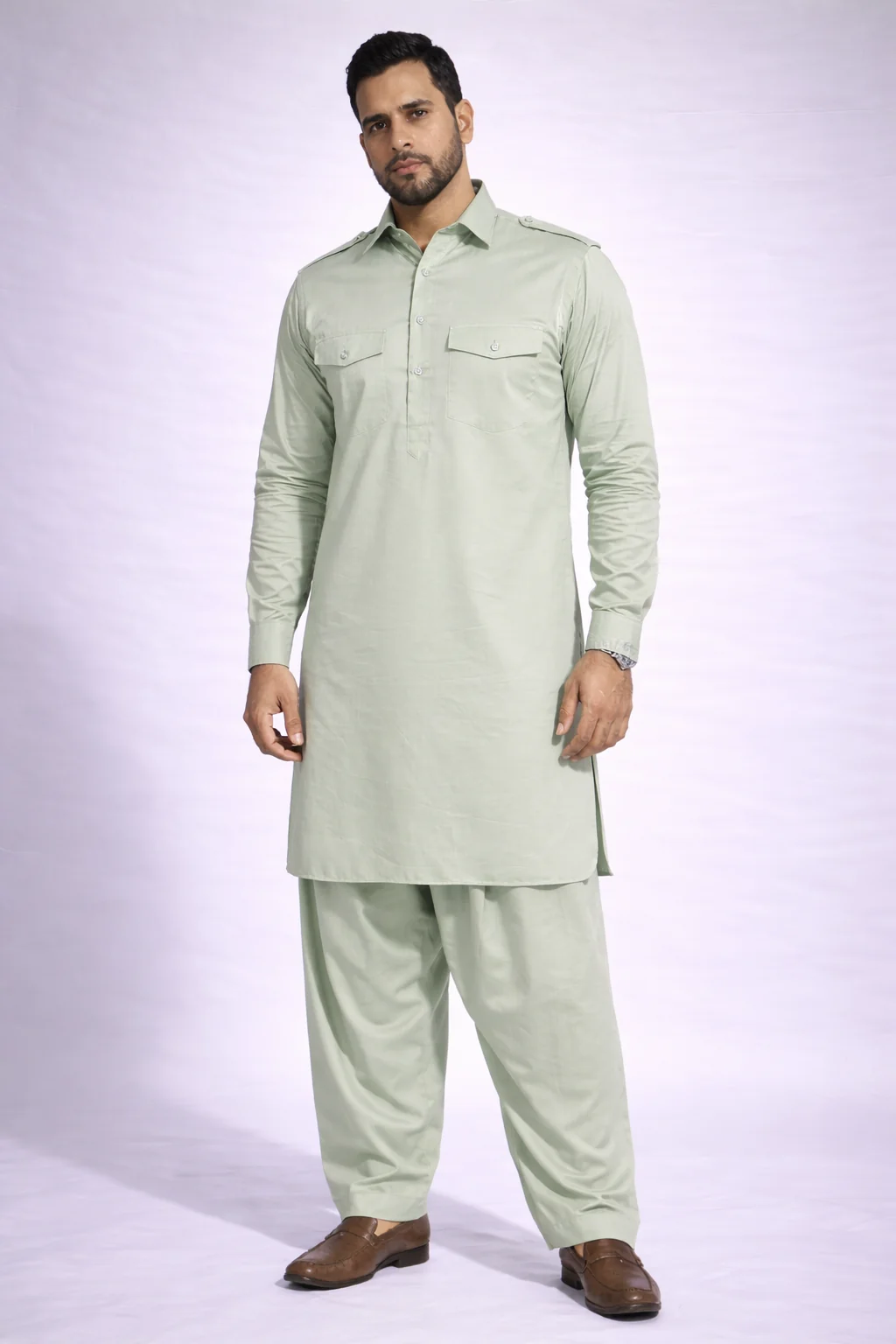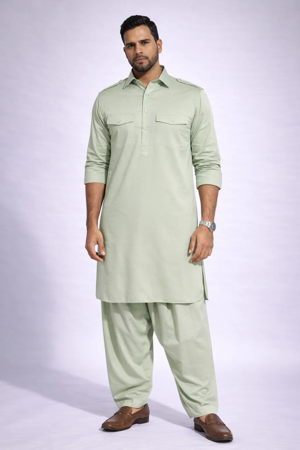 Styling Tip: This color pairs best with Tan or Brown Leather Peshawaris and a classic Gold Watch. Do not wear black shoes; they kill the vibe.